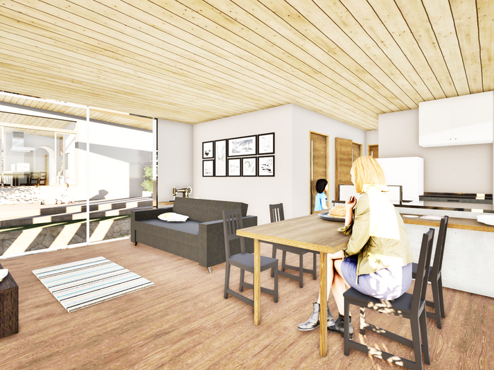 親世帯と子世帯の住宅をもともと同一敷地だった場所を文筆して2棟建てる計画。